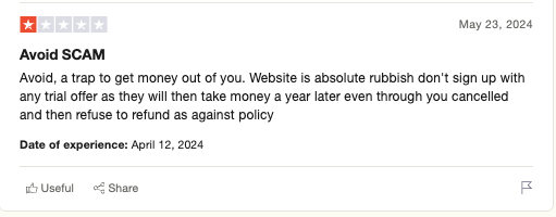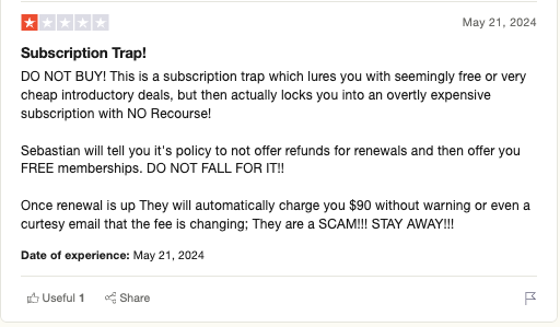 I went back to PayPal and requested a refund as this product was not as advertised and I went back to the site to find a place to CLOSE the account. No such opportunity existed and there was no indication that this was a SUBSCRIPTION, AND NO WHERE WAS THAT MENTIONED OR ADVERTISED.